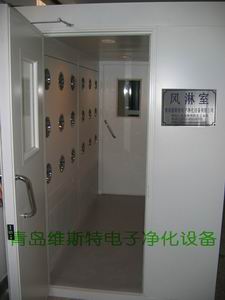 造,风淋室表面采用静电喷塑,其特点是美观,现代;其内壁,门还可以用不锈钢制作,其效