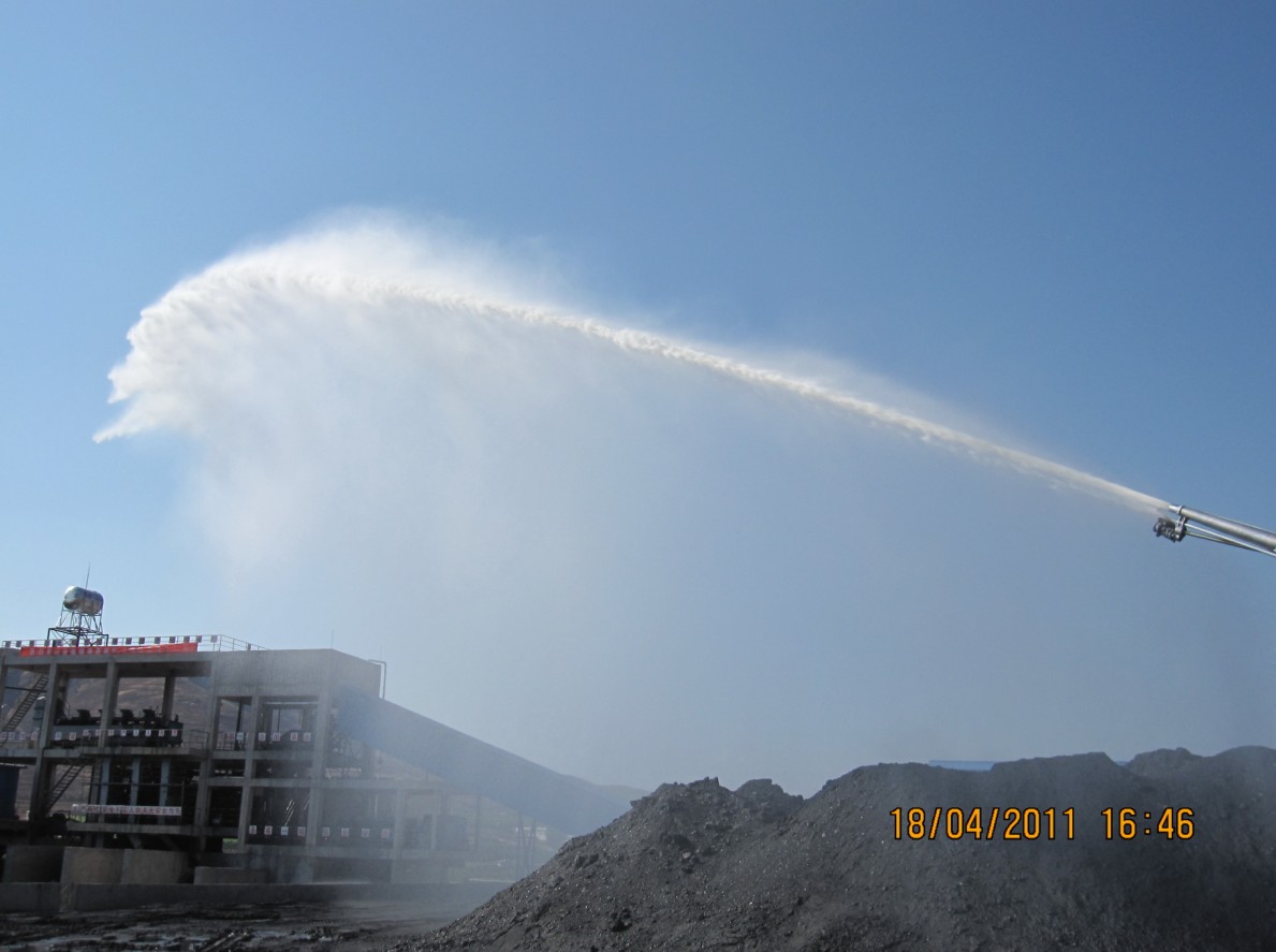 广泛应用于扬尘严重的煤焦化工等工业企业的煤场、电厂、铁路货场、煤矿、洗煤厂、钢铁厂、堆料场、储煤场、矿石等堆场及煤厂运输卡车道的洒水喷淋防尘、喷淋降尘、工矿防尘、扬尘治理、煤场洒水、储煤场除尘系统等领域