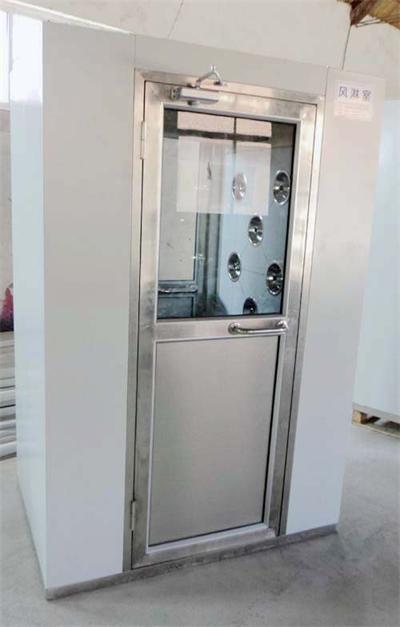 风淋室配置说明: 1) 风机---空调专用高压离心风机,型号:DSX-200,全压:1000Pa,转速:2800r/1400r/min,功率:600W,工作电压:380V/50Hz,风机出现产品质量问题五年包换 2) 风速---25M/S 3) 喷嘴---全不锈钢材料制作,可360度调方向,埋入式设计 4) 过滤系统---采用初效过滤器和高效过滤器双过滤系统,由于初效过滤器是采用无纺布制作的,可清洗可拆卸所以大大延长高效滤器的寿命,节省成本。 5) 过滤效率---99.99%,>0.3Um 6) 控制系统---自动控制(兼可手动控制)配电源指示灯和工作指示灯 记忆性感应吹淋,红外光电感应到物体后启动风机,定时结束,风淋停. 6) 风淋时间---LED显示吹淋时间(0-99秒可调),一般设定为20-30秒一次 7) 照明灯---内置式桶灯或吸嵌式防爆灯,功率:25W 8) 照度---300LXS 9) 可选其他功能---