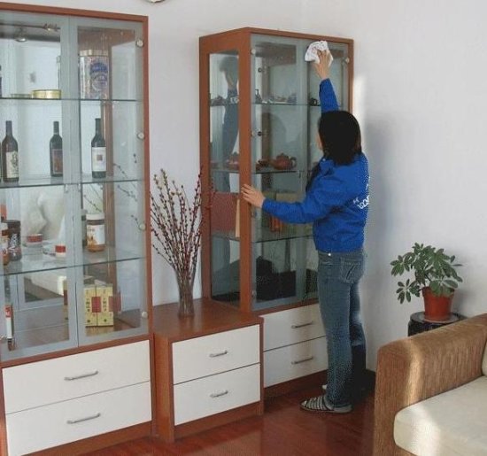 玻璃、窗框、窗槽、墙面壁砖、厨房卫生间清洗消毒、吊灯、地脚线、地面及家居。