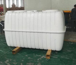 玻璃钢化粪池通过模压工艺成型化粪池,采用环氧结构胶粘结或螺栓法兰连接方式。用于生活污水分格沉淀,及对污泥进行厌氧消化。方便使用于农村家庭一家一户使用,成功解决了砖砌结构化粪池的渗漏、使用寿命短、运行状况差、维护困难以及钢筋混凝土化粪池造价高、施工周期长等问题。