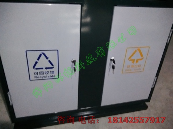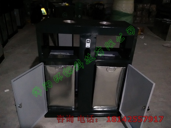 产品名称:公交站台垃圾桶 钢制分类垃圾箱 车站果皮箱
