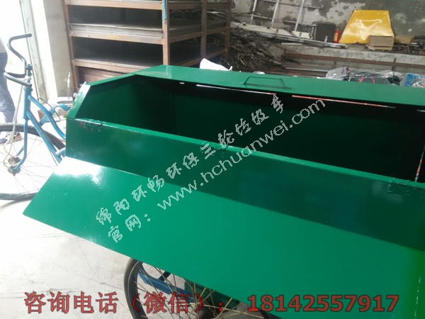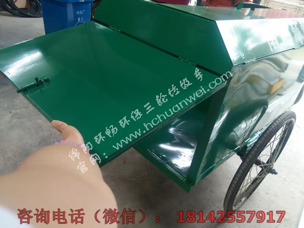 钢材选用国家标准优质冷轧板,型材,经切割冲压离子焊接成型。酸洗除锈,磷化等金属基层处理后,经高压静电喷涂制作而成。具有自然优雅抗腐蚀经久耐用不变形等特点;表面涂层采用高分子耐老化喷漆涂层,造型美观色彩可任意定配,款式及尺寸可根据空间大小随意设计;经济实用使用寿命长,成本低。耐厚性强等优点。车架带自卸车厢功能,方便环卫工人操作。