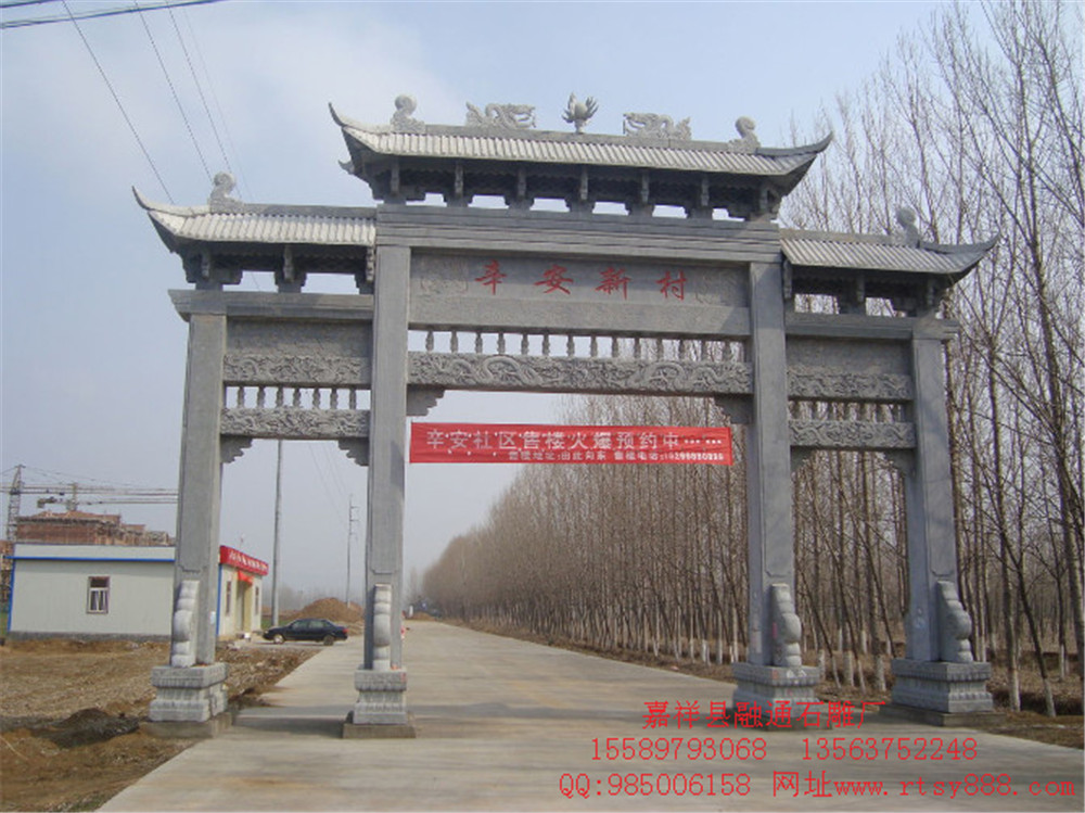 石牌坊http://rtshidiao.b2b.huishangbao.com/是嘉祥县融通石雕厂的专业雕刻产品,主要为全国各地的新农村雕刻石牌坊。 石雕牌坊既是建筑物的出入口,又是出入口的建筑物。作为建筑物出入口的门,是单个建筑中的构件之一,为房屋的“一种特殊的装修”。事实上,石雕牌坊门是一种比较特殊的门,它的标志、表彰性精神功能具有更深的文化内涵;由几门在建筑个体和群体组合中的重要地位,以及它所涵盖的历史与文化意蕴较建筑的其他部分更加丰富而深邃,所以建筑学家认为,中国占典建筑就是一种“门”的艺术,没有一个民族会像奇妙的中国人那么重视门。独特的中国建筑文化因“门”而愈发独特。融通石雕厂雕刻的石牌坊一道道不同造型和不同的雕刻图案引申出堵多意蕴深邃的古代文化。http://www.rtsy888.com/