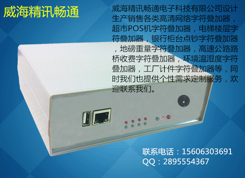 地磅网络字符叠加器在不改变原有监控结构的情况下将现场相应传感器采集到的数据信息叠加到高清网络摄像机的视频画面上,并可随视频一起存储,用户在调取监控画面的同时能够在画面上直观的看到所需信息。在使用地磅时可以把各种汽车重量等信息加载到视频图像上,可以完成更加具体的监控。地磅网络高清叠加器 适用于各种地磅设施 车辆重量显示 数量显示 叠加 各种地磅