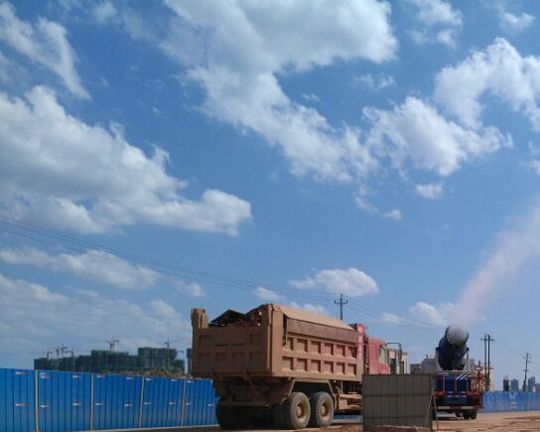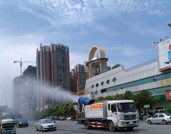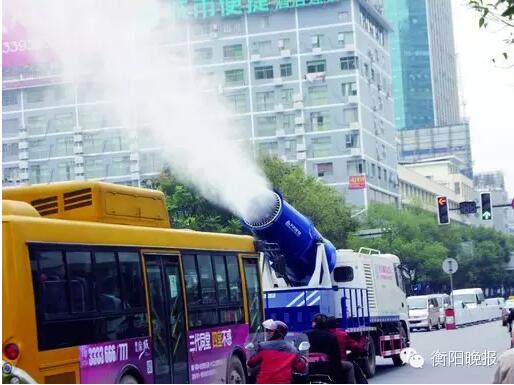 为有效控制和改善PM2.5、二氧化氮和臭氧污染,2015年11月份,衡阳市决定临时租用1台九九矿安多功能抑尘车,对城区主要道路以及部分建筑工地实施了喷淋降尘测试。由环保部门环境监测技术人员同步监测空气质量状况,实时进行数据对比分析,评估九九“治霾神器”多功能抑尘车的降尘效果。