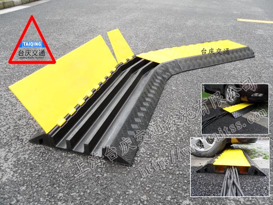 橡胶过线板的头部凸出部分卡着另一块线槽板的尾部凹槽部分,相互卡住可以防止线槽板跟随车辆前行或后退,更好的保护电缆。另外线槽板虽为橡胶制品,有一定的柔韧性,但为了延长使用寿命,最好不要高距离抛扔。使用完毕后如需清洗,可用湿布擦拭完毕后,全部统一放在平整地面并正面叠放,防止底部变形,影响与盖板的贴合度。