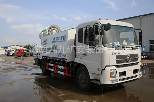 多功能降尘车一个一体化的除尘环保设备,省去了管道、电磁阀等当面的除尘设备,降低了成本投资。雾炮可以设置0-10吨的水箱,洒水时长在4—5个小时左右,在风机的作用下喷出来的水雾可细化到10~200μm,具有极强的吸附性和穿透性,能更好的进行降尘,同时也避免了对地面造成的积水状况,对于露天储煤场、装卸料堆场除尘是一个很好地选择。