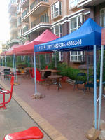 昆明帐篷规格:2*2、2*3、3*3、3*4.5、3*6篷布上可以印刷任意图案和广告宣传标语,帐篷的颜色有红、黄、蓝、绿,白,橙、枣红色、墨绿色等,篷布布料有210D,420D,300D、600D牛津布,蓬面加有塑胶防水涂层,防紫外线,经防水抗老化处理之后经久耐用。3分钟内完成安装、轻巧耐用、携带方便,收放自如.伸缩支柱能任意调节帐篷高度,适合不同的环境和地形,简单稳固。帐篷支架是经氧化处理的铝合金方管或经烤白漆(或喷塑)处理的钢质方管加工而成。帐篷因为可折叠和轻便以及遮阳和广告面积都比较大的优点而被广泛应用于各种商业活动和非商业活动,其中产品促销更是不能缺少用帐篷,帐篷也被广泛应用于生活的的各个领域。
