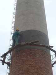 (二)高空维修工程:烟囱改造、烟囱清灰、烟囱检查、烟囱探伤、烟囱裂缝修补、烟囱加箍加固、烟囱碳纤维布加固、烟囱拆除加高、烟囱校正、烟囱更换内衬、烟囱顶口修补、检修或更换避雷设施、烟囱粉刷、隧道窑维修、烟囱抽烟力不够等。