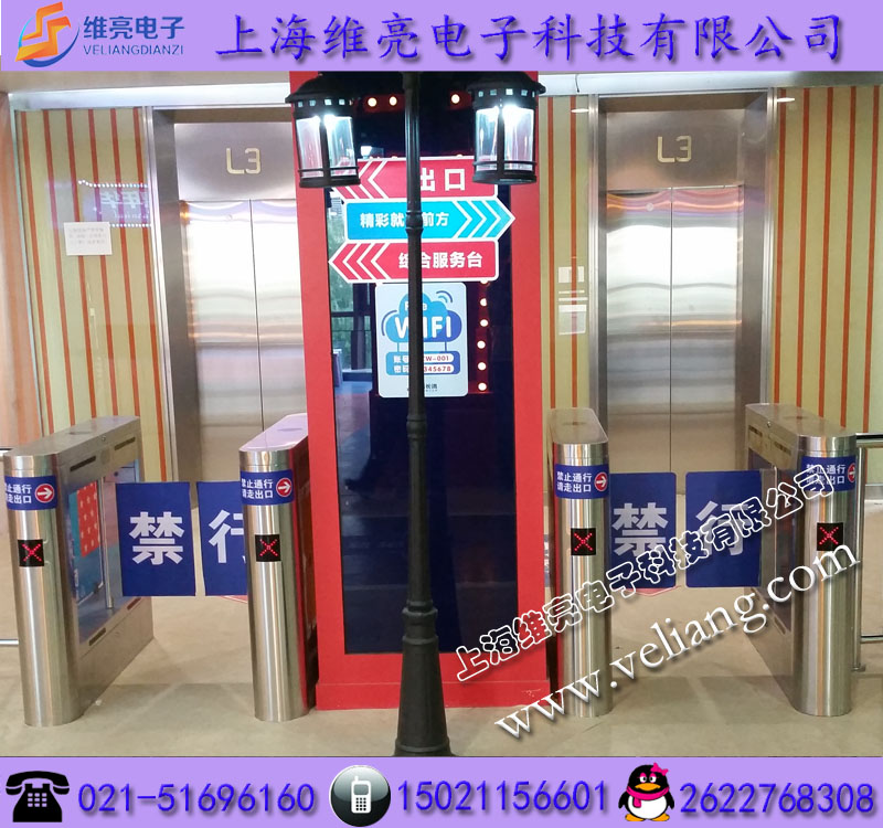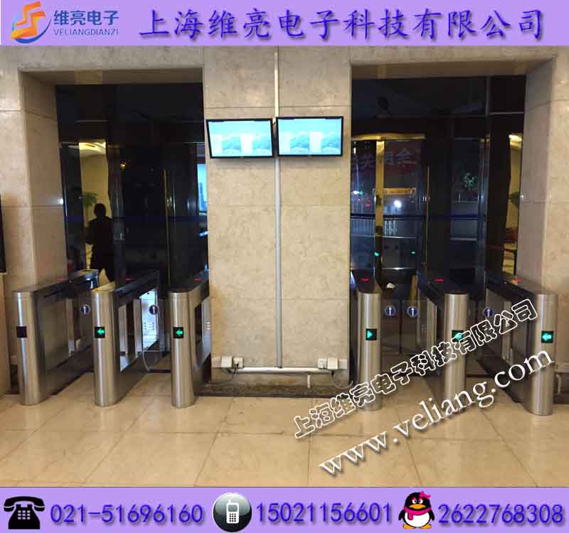 1、通道口使用设备为自动双向摆闸, 使用摆闸共4台,其中,中间两台为双机芯摆闸,两侧为单机芯摆闸。