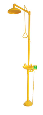单独使用喷淋部分:当化学品物质喷溅到工作人员服装或者身体其他部位的时候,使用复合式洗眼器的喷淋系统进行大水量冲洗,冲洗时间>15分钟,喷淋水流量:>75.7L/MIN