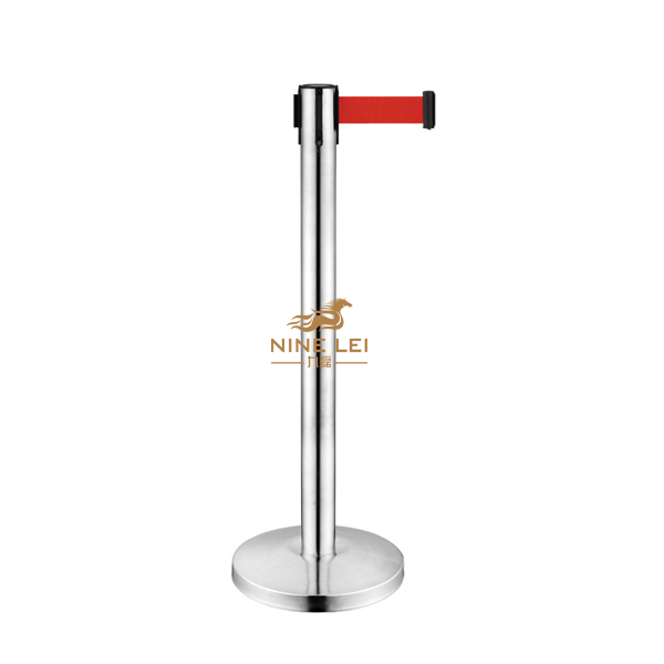 把组装好的不锈钢隔离围栏按需要摆在预留位置,拉出伸缩带,用伸缩带卡上的卡口卡在另一支不锈钢隔离围栏伸缩头上的卡口即可。