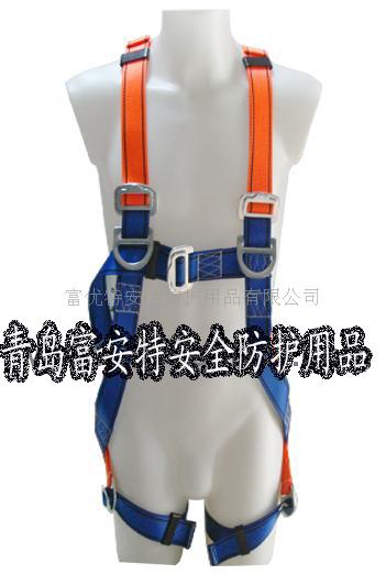 供应全身式安全带 1)带宽45MM,原材料100%涤纶,颜色:橘红色和深蓝色。