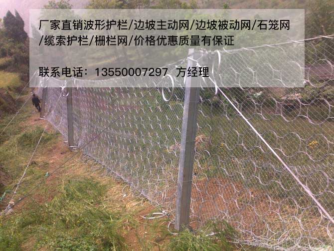 系统的柔性和拦截强度足以吸收和分散传递预计的落石冲击动能,消能环的设计和采用使系统的抗冲击能力得到进一步提高.与刚性拦截和砌浆挡墙相比较,改被动防护网厂家,边坡钢绳网厂家,榆林市被动网厂家变了原有施工工艺,使工期和资金得到减少.