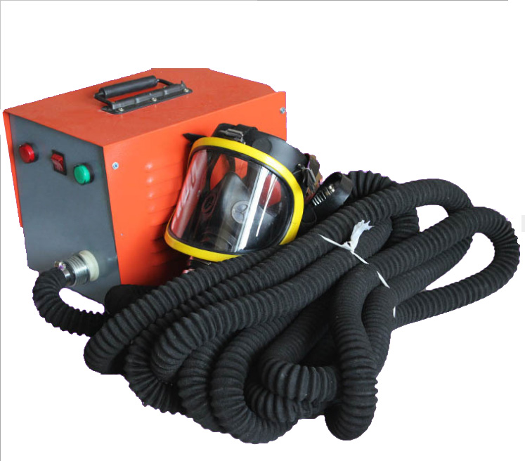 单人电动送风长管呼吸器的标准配置由面罩或头罩、蛇管、气流调节阀、腰带、20米导气软管、送风机组成。另外可以根据客户的要求可以生产2人、3人、4人共用呼吸器。