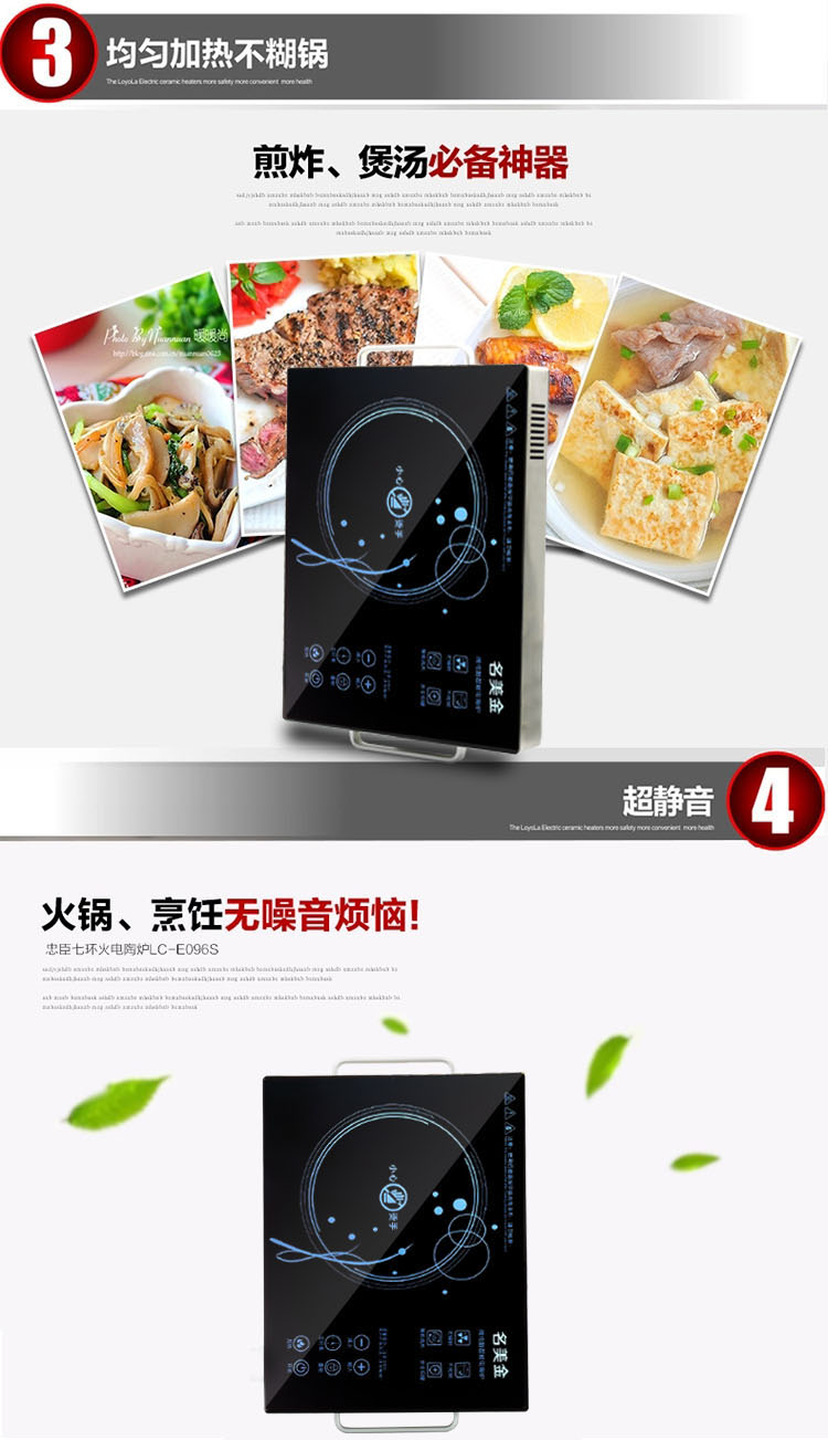 3、无辐射:采用红外线发热原理,没有电磁炉的高频电磁波的辐射,无明火,不产生一氧化碳,属于无污染和无害人体物质的健康产品。