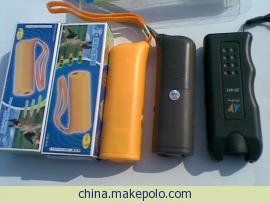 使用方法: 1.训狗:将产品下方的功能转换开关拨至中间档,按下产品上方的按钮开关BEAM 。具体方法请参考下面的《遥控爱犬》。2.驱狗:当遭遇恶狗时,将功能转换开关拨至最后一档,对准恶狗,按下BEAM按钮开关,恶狗即惊恐万状或逃之夭夭。 3.照明:将功能转换开关拨至最前一档,按下BEAM按钮即可当手电筒使用。三、电源: 9伏叠层电池一颗。四、产品为彩盒中性包装五、遥控爱犬:科目一、训练:狗定点排便。科目二、训练狗跑远了不用人叫,只需按按驱狗器狗马上回来科目三、训练狗坐下。科目四、训练站立。科目五、训练狗就地打滚。科目六、训练狗跃身接食。具体方法见附带在产品上的“遥控爱犬” 六、驱狗器效果理解:本产品主要用于外出时防止被狗攻击。当遇到试图攻击你的狗时,你便拿出此“ 秘密武器”,对狗发射。125dB的超声波对狗来说听觉刺激很大,此时狗认为针对牠的。所以非常惊恐,仓惶逃离。下列情况驱狗效果不佳: 1、自己养的狗,因为它知道主人不会伤害牠的; 2、噪音较大的环境,如闹市区或马路边; 3、和主人在一起的狗——狗仗人势;经过训练的大型狗——训练有素; 2、电池电压过低时——发射功率低。上述情况不会影响本产品的使用效果,因为自家的狗、常逛街的狗、和主人在一起的狗和训练有素的狗都不会乱咬人的;注意:平时最好不要拿驱狗器故意逗狗,因为狗听多了便不足为奇了。当在驱狗档灯光明显暗淡时要及时更换电池,选用碱性电池时效果较好。经专门仪器对比测试,本产品的超声波输出功率和效率在同类产品中已作到最好。因目前超声头的功率所限,若进一步提供输出功率,超声波头将很快损坏。待日后有大功率超声波头研发出来(目前世前没有更高的超声波发射头),才有望得到提高,望见谅!七、大订单批发-包装说明:外箱:外尺寸 30*27.5*21(cm)内尺寸 27.8*27.8*25.8(cm) 每箱净重:5.4KG 每箱毛重:5.7KG 每箱数量:50PCS 彩盒包装重量:107g 裸机重量:50.5g 裸机带电池重量:88g 裸机尺寸:130*26*40(mm)