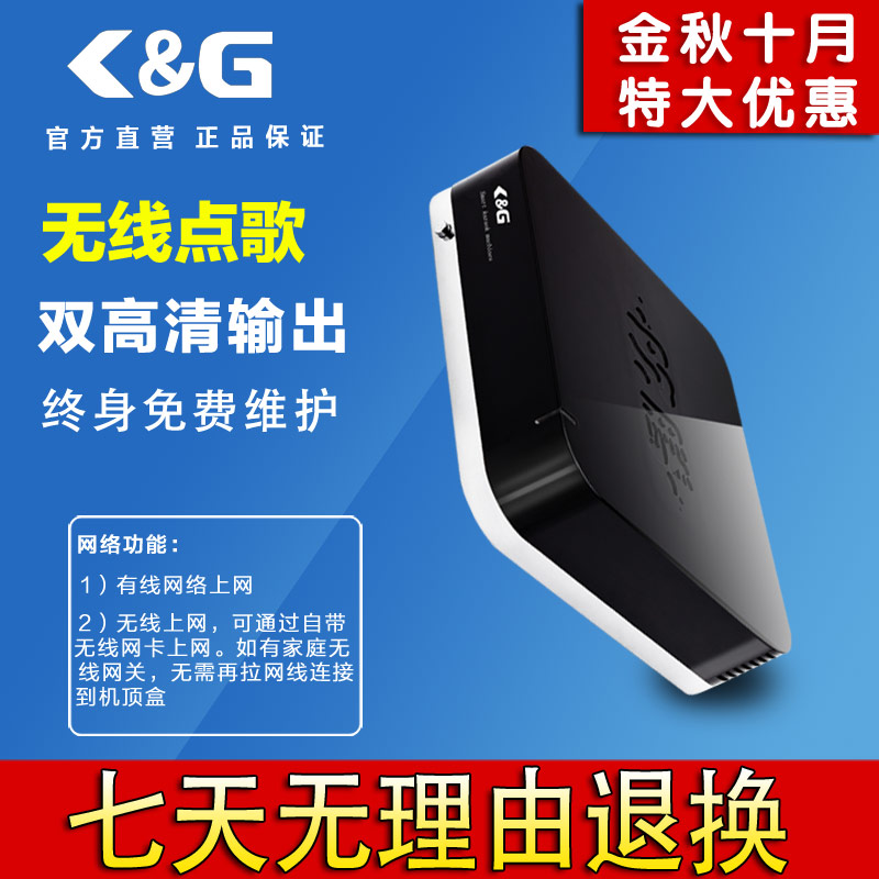 5、服务:385个城市预约安装服务。投巨资在全国385个城市建有安装服务网店,是本着百年品牌的梦想,更好的服务用户,让你们用的舒心,唱的开心。再一次树立行业服务新标准,品牌保障,品质服务,尽在K&G家庭点歌机。