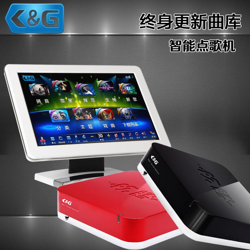 K&G智能点歌机中的高端品牌,获得酷歌这一全球最大正版卡拉ok音乐发布平台的正式授权,取得两万首正版歌曲的使用授权以及无限量的新歌云端更新。K&G是全球首家全部搭载正版歌曲的高端点歌系统品牌。