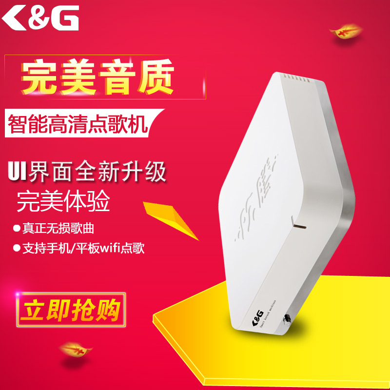 K&G智能点歌机适合家庭及小型商业场所使用,嵌入式系统,可任意开关机,内置高达4万首真人高清原唱MTV歌库,具有HDMI高清输出接口,通过遥控器简单操作,操作流程同KTV一样,具有按歌星点歌、按拼音点歌、按笔划点歌等功能,同时更具有边唱边点功能,随机赠送的歌库更新软件,更可无限量更新更多最新自己喜爱的歌曲。