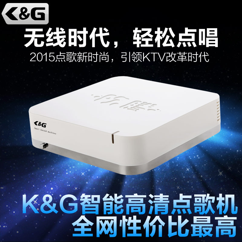 1、K&G智能点歌机集家庭卡拉OK点唱机,高清电影播放机,移动存储于一身的时尚产品终于揭开了神秘的面纱,她所具备海量超逼真真人高清DVD歌库、以及顶级原音伴唱效果和顶级视听效果一定会让广大消费者如获至宝。