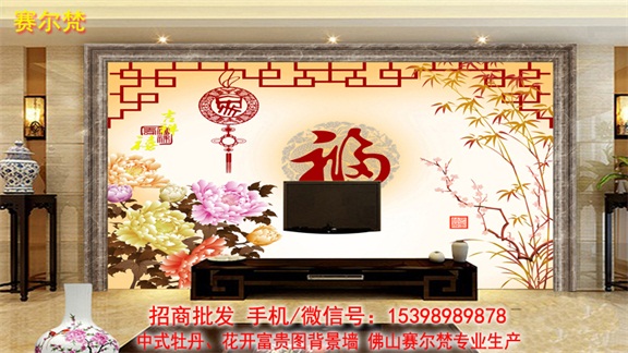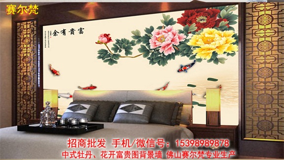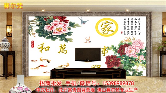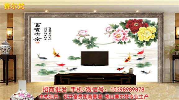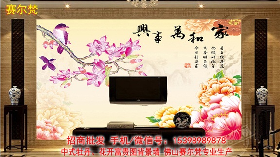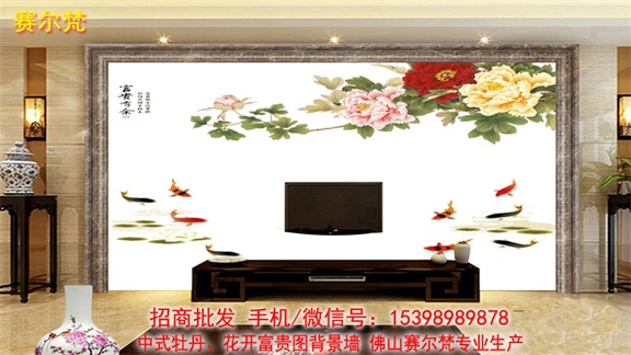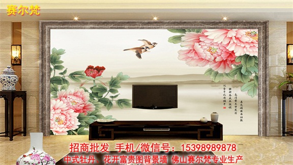 电视背景装饰画 牡丹花背景墙 诚招卫滨经销商加盟
