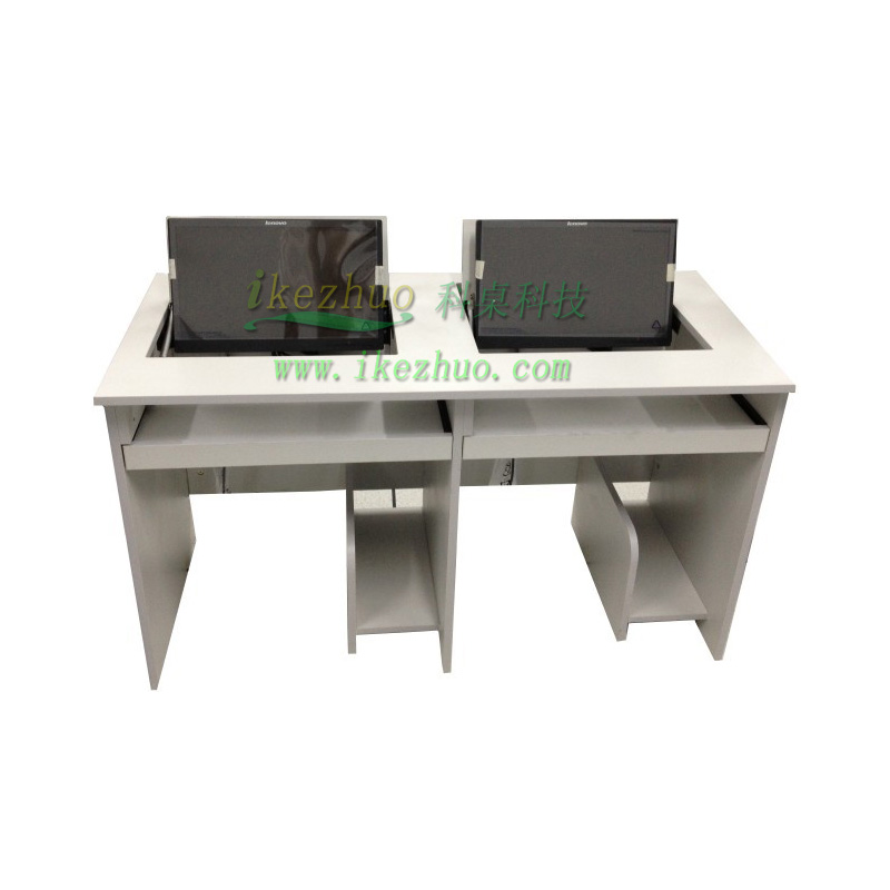 科桌 翻转电脑桌主要应用于各种大型会议室,学术报告厅,计算机教室,多媒体教室、多媒体会议室、多媒体电子教室、多媒体电教室、机房、培训中心,展厅内及多功能会议厅等。普通教室与计算机教室模式相互切换快速,不阻碍老师与学生之间目光交流,当需要使用显示器时轻按前端桌面板隐藏在桌子内部的显示器会自动从桌子下面升到桌面翻转到合适角度。当不使用显示器时,可手动按下显示器翻盖面板至桌面平整,显示器自动锁住隐藏在桌子内与桌面保持平整一致。起到防尘,防盗,保持桌面平整美观。使用方便,手动控制,翻转自如。