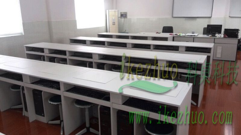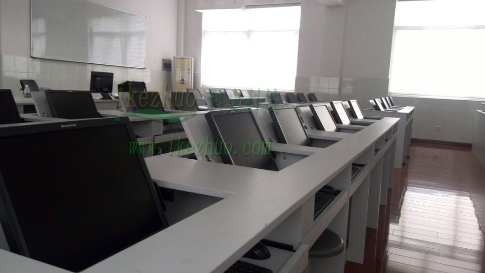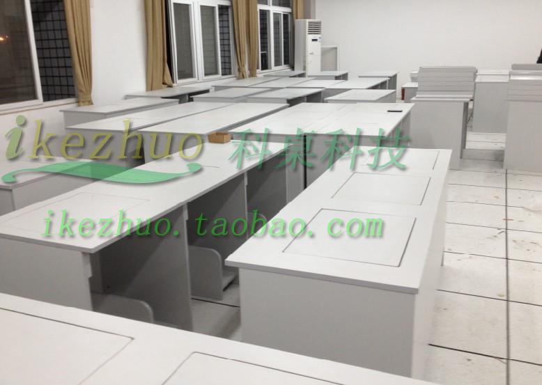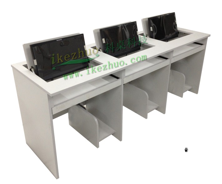 科桌显示器翻转电脑桌 高档培训台电脑桌