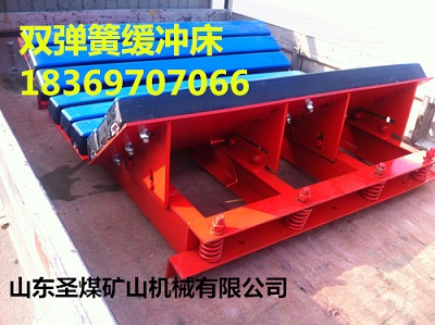缓冲床橡胶采用进口天然橡胶、橡胶弹性高、含胶量大、橡胶密实度高、抗拉强度大、能最大程度上吸收下落物料的冲击力。床体表面采用超高耐磨分子材料,分子量大于650万,光滑表面,摩擦系数小,耐磨性好,使得输送带运行时的摩擦力降到最低,广泛用于矿山开采,矿井下巨型煤块输送。