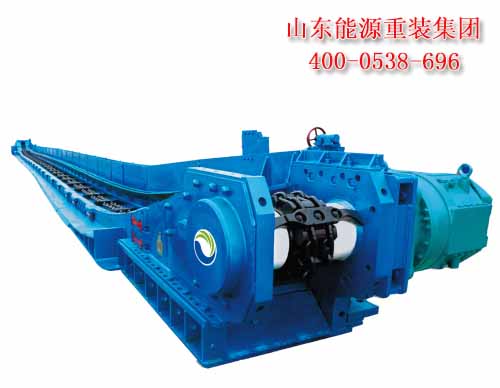 刮板输送机的工作原理是:将敞开的溜槽,作为煤炭、矸石或物料等的承受件,将刮板固定在链条上(组成刮板链),作为牵引构件。当机头传动部启动后,带动机头轴上的链轮旋转,使刮板链循环运行带动物料沿着溜槽移动,直至到机头部卸载。刮板链绕过链轮作无级闭合循环运行,完成物料的输送。