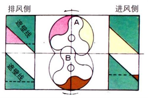 2、转子组装时两端轴颈的平行度偏差应不大于0.02mm,两端面与墙板的平行度偏差应不大于0.05mm。当风机进出口方向和主轴位置不变时,转子压力角间隙应在转子水平线成45°角两个位置上调整。不同型号的风机转子各部间隙不同。