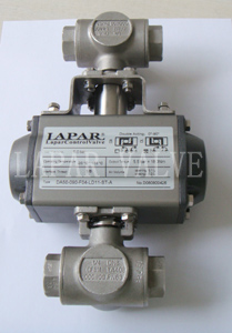 LAPAR公司从台湾引进的LPA13-系列螺纹三通球阀,采用了防火、防静电、阀杆防爆出装置技术,可适用多种恶劣工矿场合。采用的意大利的气动执行器与球阀一体式连接,无须另配支架,减少了因安装连接引起的质量问题,同时也为厂区密密麻麻的设备节约了空间。