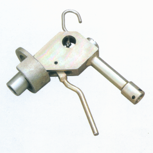 4、工作原理: 一种矿用单体液压支柱使用的注液枪,包括:阀体、锁紧套、手把、顶杆、隔离套、单向阀座、钢球、弹簧、压紧螺钉、出液口,在阀体的后端利用接头连接进液管,手把通过销轴连接在阀体上,隔离套、单向阀座、钢球、弹簧依次装置在阀体后部内,它是在阀体上开有过液槽,过液槽的外部由密闭板密封,在阀体前部设置有前进液孔,在隔离套上设置有后进液孔和半圆弧流液槽,前进液孔与后进液孔通过过液槽连通,加工工艺较为简单,具有结构紧凑、体积较小、密封性能好等特点。