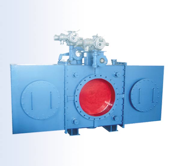 双合插板阀在设计上吸收了国外眼睛阀浮动阀板的优点;压紧传动机构采用:齿圈、齿轮、梯形螺纹丝杠副同步双向压紧。左、右旋梯形螺纹丝杠同步压紧的优点是;起动力矩小,螺纹副白锁性好,阀门密封可靠。阀板移动采用销齿传动机构,不易积灰,满足了粉尘多、润滑条件差、工作环境恶劣的场合使用。