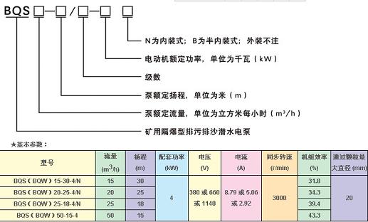 BQS(W)系列矿用隔爆型排污排沙潜水电泵是我公司与江苏大学联合研制开发的,产品规格齐全,功率范围从2.2kW~315kW,流量范围从10m3/h至2500m3/h,扬程范围从7m至700m,全部产品皆实现了全扬程、无过载。