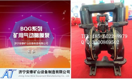 我公司生产的BQG系列矿用气动隔膜泵有效解决了传统隔膜泵最大的结构缺陷(外置配气阀,容易死机,而且使气阀适用寿命短),内置配气阀,真正实现了永不死机,且结构紧凑,适用寿命长,维修方便,并在性能上远远超越了老式隔膜泵。带有煤安标的专业矿用泵,其无非是煤矿井下高瓦斯及突出瓦斯煤矿排水排污的首选泵,并且其绝对防火、防爆,特别适用于高瓦斯矿井和石油、化工等部门使用。另外,气动隔膜泵还具有潜水泵、自吸泵、杂质泵、泥浆泵的一切功能,适用范围广泛。(TEL: 185-6022-8979)