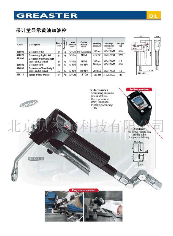 意大利PIUSI电子润滑脂加注枪使用方便,精确计量、坚固耐用。椭圆齿轮计量技术,先进的电子控制;手持式铝合金结构,自重轻,光滑美观;读数、操作简便;