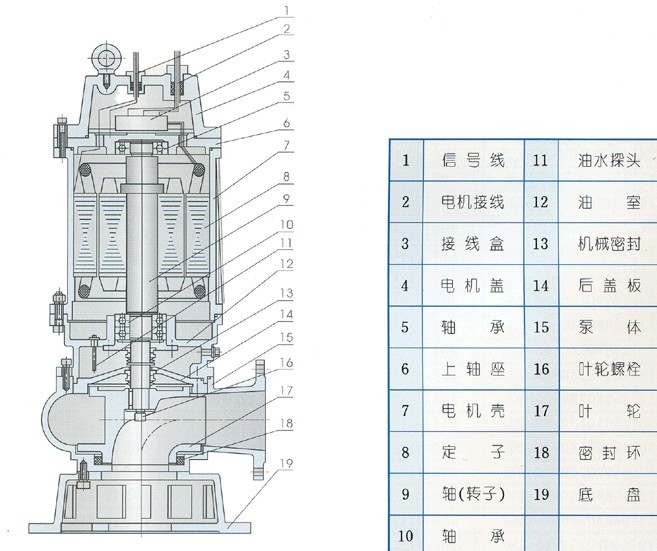 4、轴瓦或轴套磨损后,轴承间隙不超过0.45至0.7毫米时,经维护切割式潜污泵可照常使用。间隙超过了上面的范围,必须更换新轴瓦或配用轴套。