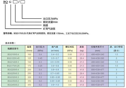 BQG气动隔膜泵型号表示含义: