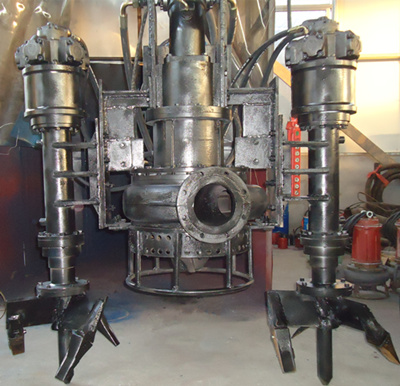 它是由液压系统提供动力,马达为执行元件,将液压能转化为机械能的新型潜水式砂泵。工作时通过水泵搅拌叶轮的旋转,将能量传递给浆体介质,使之产生一定的流速,带动固体流动,实现浆体的输送。