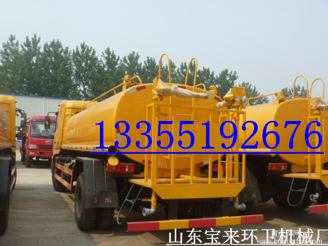 主要配置;前冲(喷)后洒,带侧喷,罐体后带工作平台,平台上安装绿化洒水炮,洒水炮可全方位旋转,可连续调成直冲状、大雨、小雨、毛毛雨,带安全护栏,配备全国质量评比第一名的大功率专用洒水泵,泵可自吸自排,安装过滤网,带消防接口,可通过消防栓进水,带自流阀。 同时厂家直销3吨5吨8吨10吨12吨15吨20吨洒水车配件包括:洒水炮、水泵、鸭嘴等常用洒水车配件。买10吨洒水车请认准世界最大的洒水车生产基地-山东宝来。详情? 13355192676