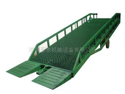 产品规格:根据承载能力产品分为:6、8、10吨液压登车桥,移动式液压登车桥是叉车配合使用的货物装卸辅助设备,可根据汽车车厢的高低调节高度,叉车可以直接通过本设备驶入车厢内部批量作业,设备采用手动液压方式无需外接电源,省时省力,提高工作效率。
