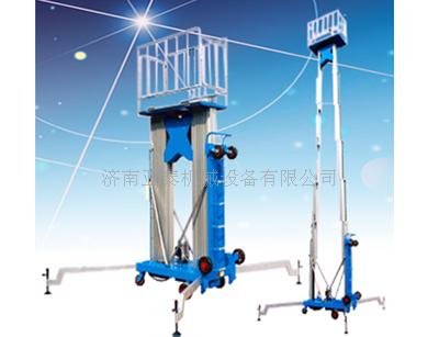品规格:设备根据升降高度可分为4、6、8、10、12米升降平台,升降平台主体结构采用高强度铝合金型材8米以下为单铝合金桅柱,10米以上为双桅柱式,设备上下控制升降占用空间小,可通过房间或楼梯口,安全可靠。