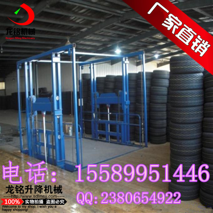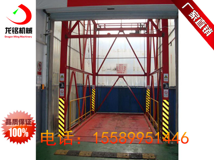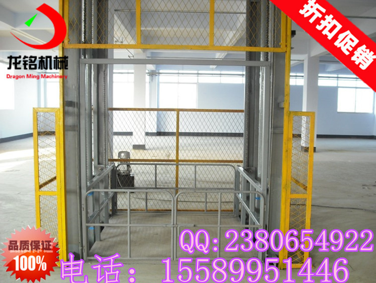 导轨式升降平台是用于货物升降的液压升降设备,采用液压油缸作为主要动力,通过重型链条和钢丝绳传动,保证机器运行绝对安全。无需地坑和机房,特别适合于有地下室,仓库改造,新建货架等,具有安装维修方便,美观,安全,操作方便。具体的根据现场环境生产。联系电话:15589951446 QQ:2380654922