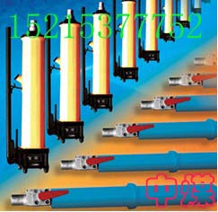 实用新型涉及到矿山溜槽移动装置,是一种液压推溜器。其结构为缸体外壁的前部和后部同向分别固定装有前液压阀和后液压阀,在两阀之间的缸体外壁相对的两侧固定装有定位轴;缸体通过定位轴座落在固定座上的纵向长孔内;固定座的底部固定装有底板,底板靠近活塞杆一端向上翘起;固定座的顶部固定装有呛顶座,呛顶座上部的槽形结构向后倾斜,并与水平面成20°-24°夹角。本实用新型设计合理,液压注液枪注液与缸体分离,推溜器移动方便,缸体两端可调;活塞杆可与挡煤板连接时正常接触,延长设备使用寿命。