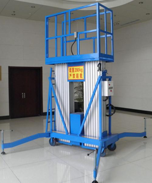 小型铝合金升降机|恩施铝合金升降机|翔宇机械值得信赖 简易货梯 货梯 灰铁棒 铸铁棒 铝合金升降机 铝合金升降机采用高强度优质铝合金材料,具有造型美观、体积小、重量轻、升降平稳、安全可靠等优点。广泛用于工厂、宾馆、餐厅、车站、影剧院、展览馆等场所,是保养机具、油漆装修、调换灯具、电器、清洁保养等用途的最.佳安全伴侣。 产品特点 1、结构紧凑,运输状态尺寸小,可进入一般电梯的轿厢以及能顺利通过门洞和狭小通道; 2、特制的桅柱间导轮装置,升降平稳自如; 3、整机重量轻,机动性好,适合单人操作; 4、双重保护的支腿结构,工作更安全,且可贴近工作面升降作业。 车载式(电瓶,柴油)铝合金升降机 把升降机安装在汽车上的高空作业设备。由专用底盘、工作臂架、三维全旋机构、柔性夹紧装置、液压系统、电气系统和安全装置等部分组成。由升降机和电瓶车配套改装而成的高空作业专用设备。它利用汽车发动机或电瓶车原有直流动力,勿须外接电源,即可行驶又可驱动升降平台,它移动方便,作业流动范围广,产品具有无污染,无尾气,作业范围大,流动性强。特别适用于冷库、人群密集区域(火车站,汽车站,飞机场)。广泛用于城建、油田、交通、市政等行业。根据个人要求可设停电情况下的应急下降装置、平衡阀、自动保压等安全装置,防止高空升降平台超载的安全装置、漏电保护装置和缺相保护装置、防止液压管路破裂的安全防爆装置。 铝合金升降机、升降机 铝合金升降机在高空作业领域有着较为广泛的应用,在室外装饰、商场装修、路灯检修等高空作业场合都可以看到铝合金升降机工作的身影,翔宇升降机作为专业生产铝合金升降机、铝合金升降平台的制造企业,就来为大家讲解一下在业过程中令人烦感的问题。 原因一:电压接错,额定工作电压有220v和380v,客户在使用和选购过程中一定要做好了解,防止接错电压,这样不但会导致铝合金升降机不能正常起升,还会导致铝合金升降机线路烧坏。 原因二:电控开关故障,电控开关使用频率较高,这是一个比较容易出现问题的地方,在使用过程中如果出现电控开关损坏一定要做好修理或更换工作,避免影响工作效率。 原因三:设备短路或部件损坏,这时一定要做好汇报工作,及时把故障报告到相关部门或厂家,一定要做好故障修理工作,防止 存在安全隐患。综上所述:铝合金升降机在使用过程中难免会出现故障,出现问题时应当对症下药,针对故障问题做出正确的解决方案,最简单的办法就是及时把故障向生产厂家反铝合金升降机映,让其技术人员及时做好维修工作。