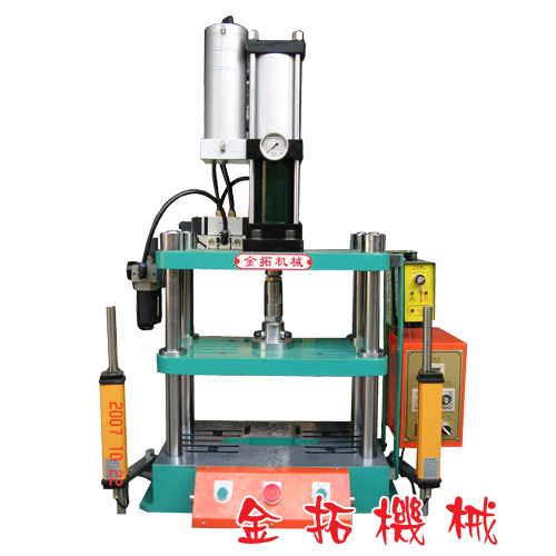 产品特点: 1、以压缩空气为动力源,噪音小,无污染,环保,操作简单; 2、没有油压系统待机时所产生之噪音,可节省电力消耗降低生产成本; 3、利用空油压增压原理,达到动作速度快,高出力的要求; 4、出力调整容易,只要调整气压压力,就能达到需要的压力,简单又方便; 5、四柱三板式钢板结构,配合导向轴承,精密度高,可适合不同产品加工,其工作高度与工作面积大小,可依客户实际要求制作; 6、安全设计,双手制操作,设有紧急按钮,另可选装光电安全装置,工作更安全; 7、可选配工作桌台(长650×宽550×高700mm)。
