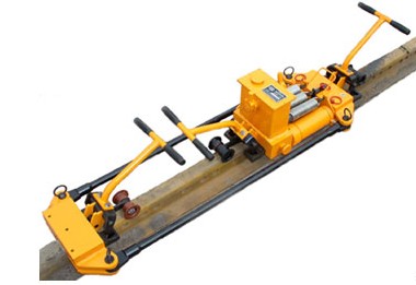 用于铁道线路维修工作中调整钢轨接缝的小型机具。该机适用于43Kg/m至75Kg/m各型钢轨。设有四种安全装置,确保在使用中夹钳与钢轨夹死的情况下,用任何一种方法即可快速解开夹钳、确保行车安全。本机主要由手动液压泵、液压机缸、分离复位、夹具四部分组成。以液压油介质传递动力,手动操纵。夹轨采用楔铁式夹轨方法,结构紧凑,夹紧力大。