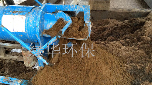 用液下切割泵将鸭粪及粪水送至鸭粪处理机机内,通过安置在筛网中的螺旋轴,挤压分离出固态物质,液体则通过筛网从出液口流出。